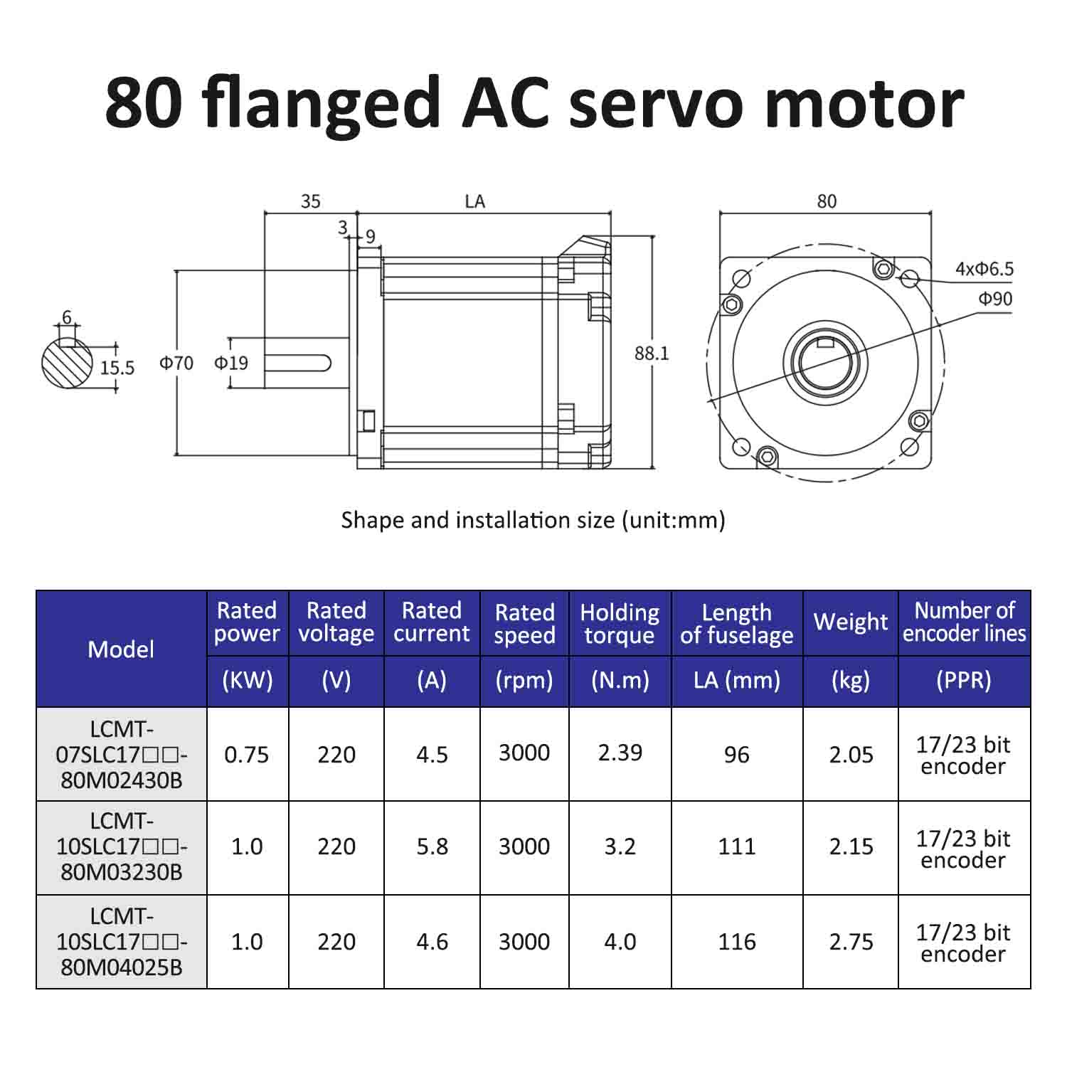 | Mootori mudel | LCMT-07SLC17-80M02430B | LCMT-10SLC17-80M03230B | LCMT-10SLC17-80M04025B |