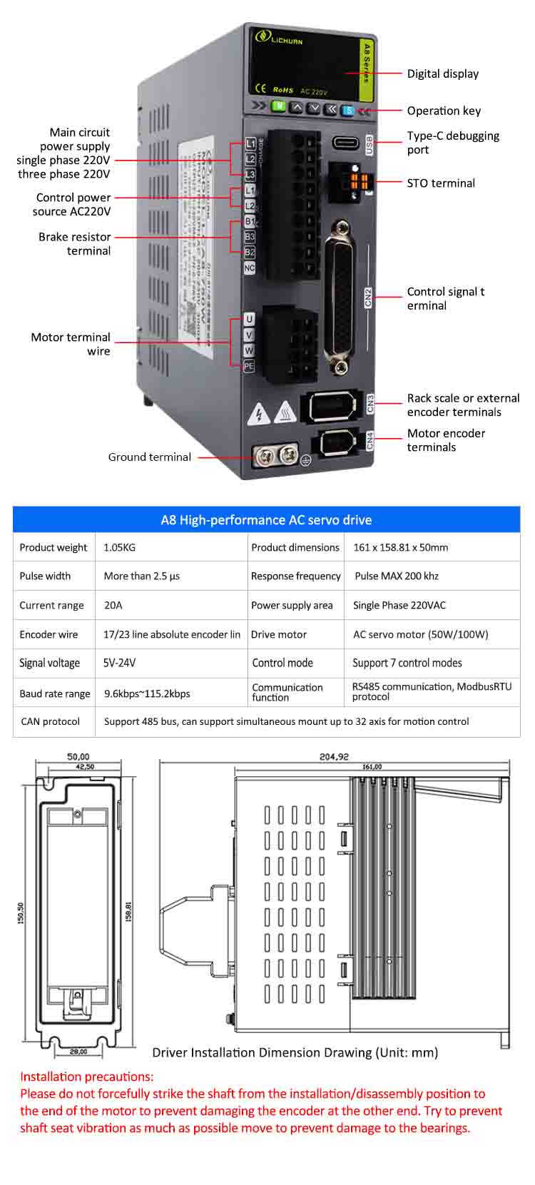 | Toote nimi | Lichuan A8 suure täpsusega STO ABZ vahelduvvoolu servomootori draiverite komplekt |