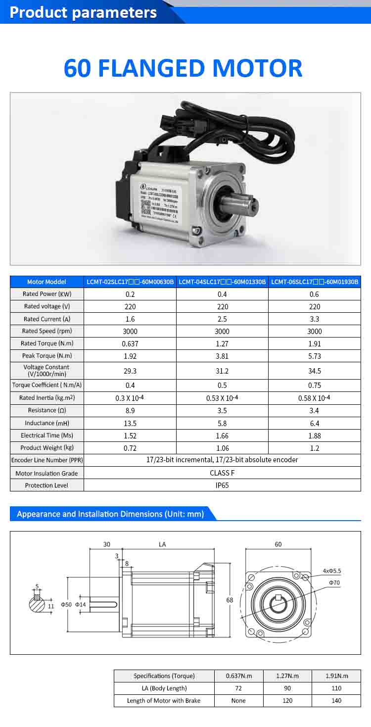 | Mootori mudel | LCMT-02SLC17-60M00630B | LCMT-04SLC17-60M01330B | LCMT-06SLC17-60M01930B |