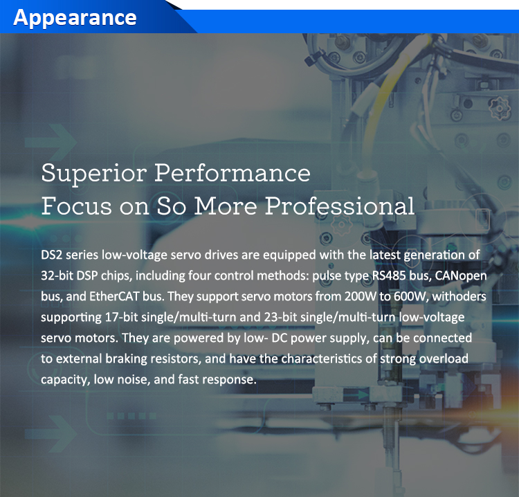 Pulse/RS485/CANopen/EtherCAT 40 äärikuga 100 W madalpinge alalisvoolu servomootori draiverite komplekt
